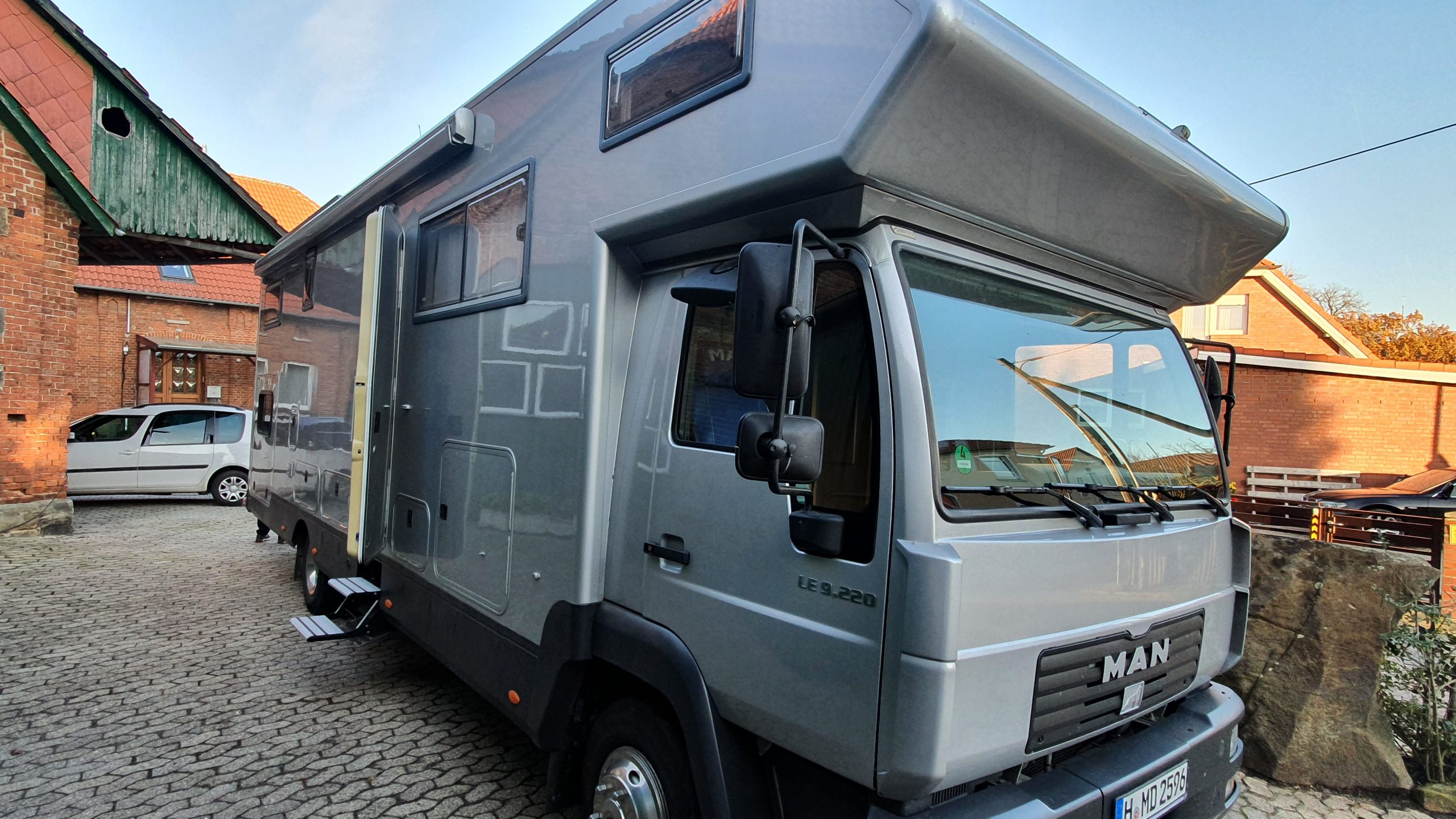 MAN 6 Zylinder mit 220 PS und der Möglichkeit meinen 8,50 mtr. langen Anhänger mit den Motorrädern, Auto und Quad zu ziehen.