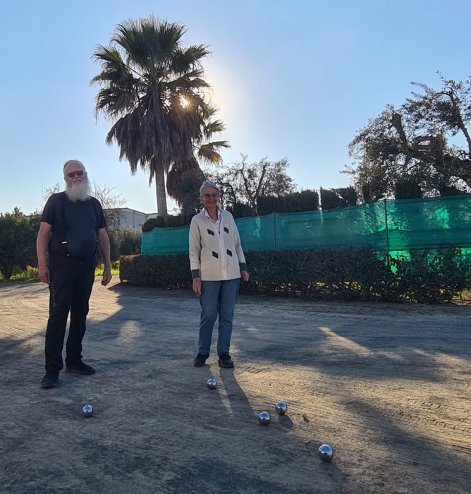 Heute noch eine kleine Partie Boule, nach dem hervorragenden Gulasch plus Weißkohl und Reis. Danach gab es Pfirsich Melba 😋