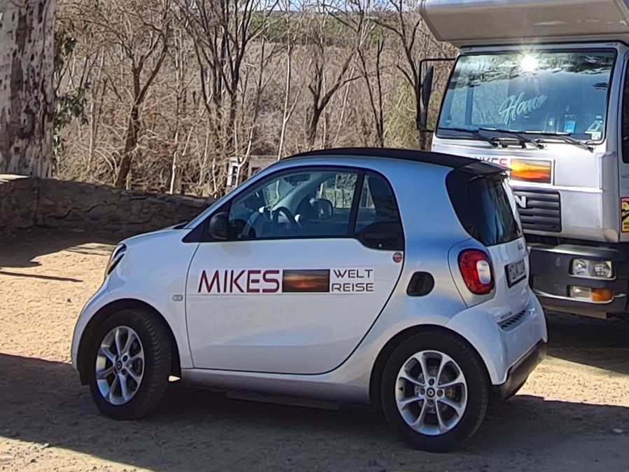 Sooooo. Der mittlere 230 Volt Anschluss des 4.000 Watt Wechselrichter im Anhänger ist in der Lage das Elektroauto, den eSmart, über die zwei 200Ah LiIoFePo4 Puffer Batterien zu laden, ohne durch Überlastung abzuschalten.