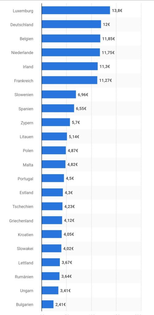 Beachte einmal die aktuellen Mindestlöhne in der EU….