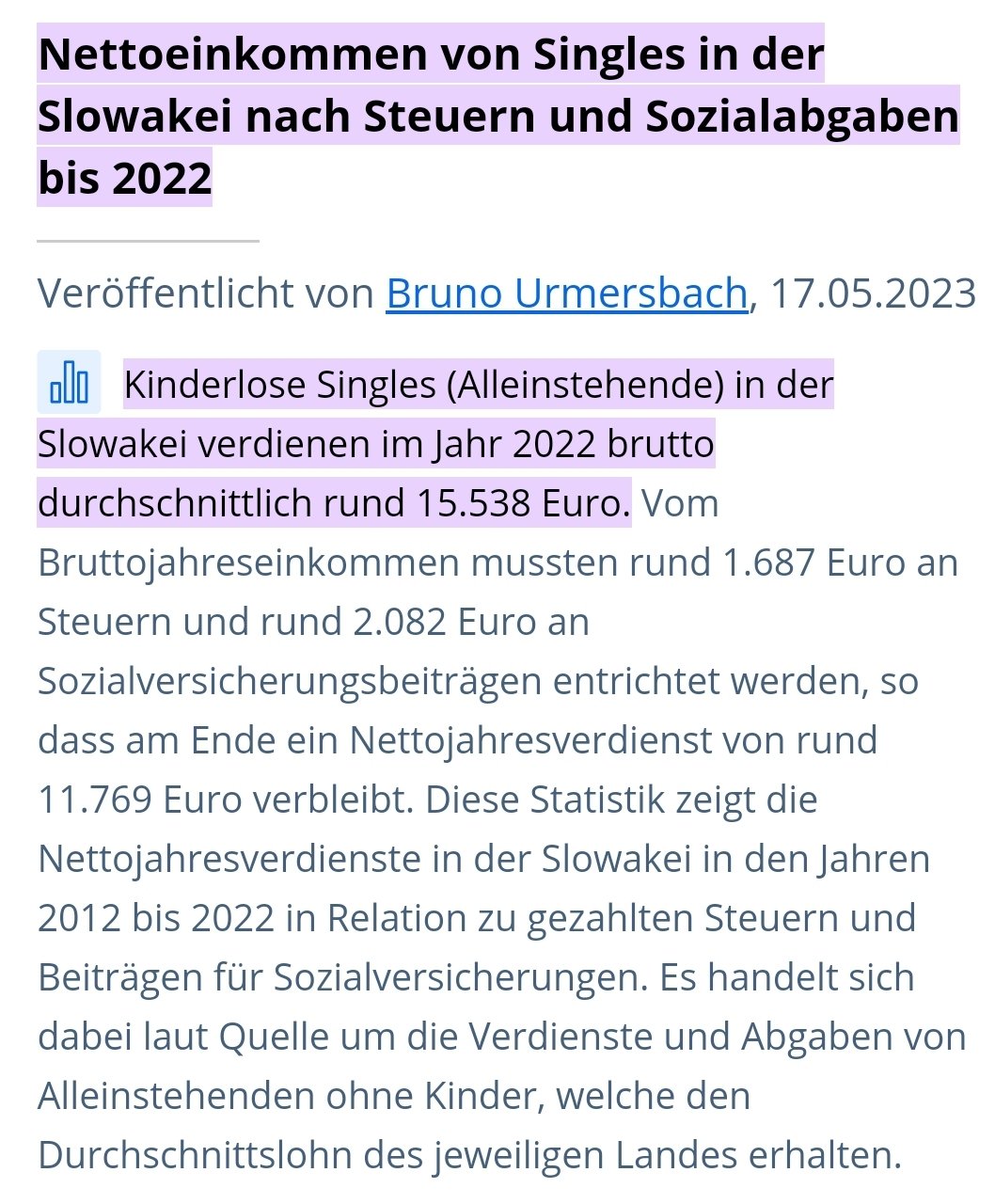 https://de.statista.com/statistik/daten/studie/1192696/umfrage/nettojahresverdienste-in-der-slowakei-in-relation-zu-steuern-und-sozialabgaben/#:~:text=Nettoeinkommen%20von%20Singles%20in%20der%20Slowakei%20nach%20Steuern%20und%20Sozialabgaben%20bis%202022&text=Kinderlose%20Singles%20(Alleinstehende)%20in%20der,brutto%20durchschnittlich%20rund%2015.538%20Euro.