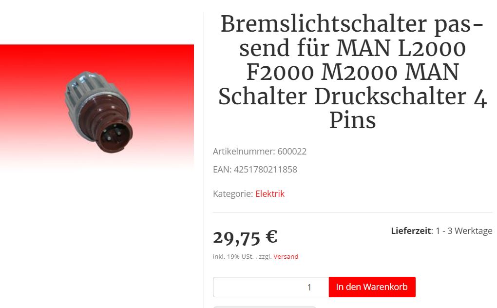 Bremslicht-Taster. Es würden zwei benötigt. Sind aber bereits in Deutschland neue eingebaut worden. Dauert etwa eine halbe Stunde.