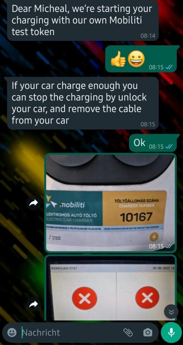 Kaum den Blogeintrag geschrieben, schon die Lösung via WhatsApp und das Auto lädt.