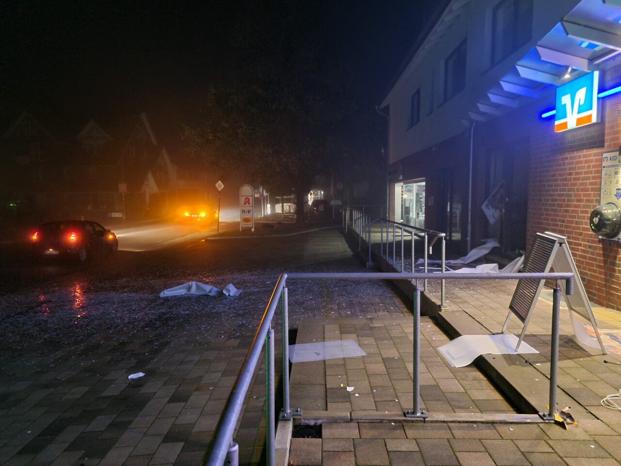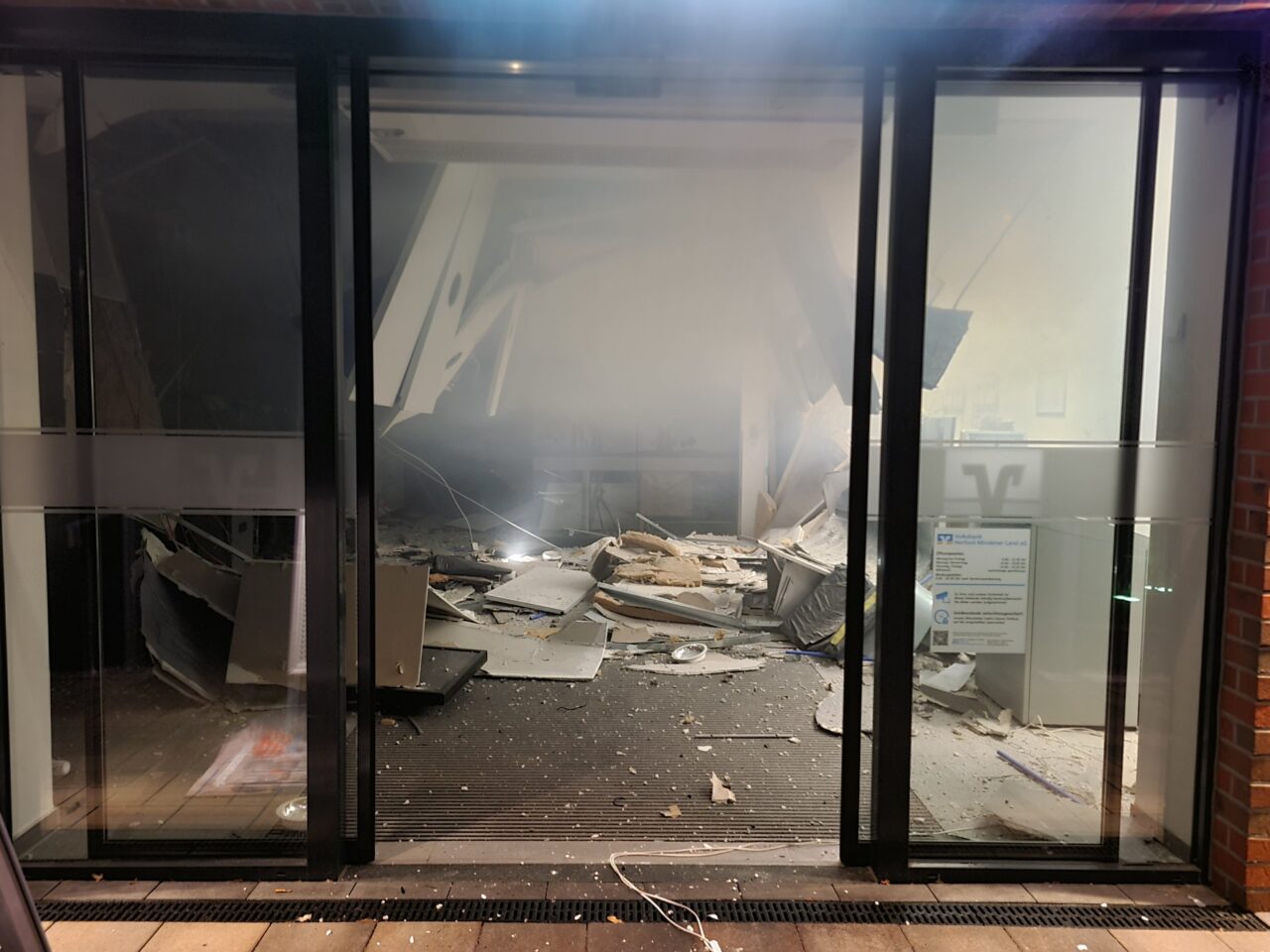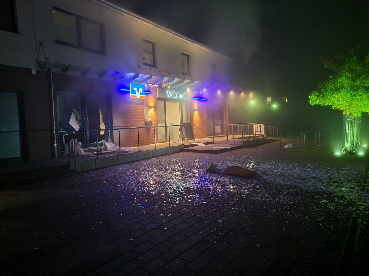 Um etwa 3.15 Uhr heute Morgen wurde die halbe Volksbank gesprengt. Das war eine Druckwelle!