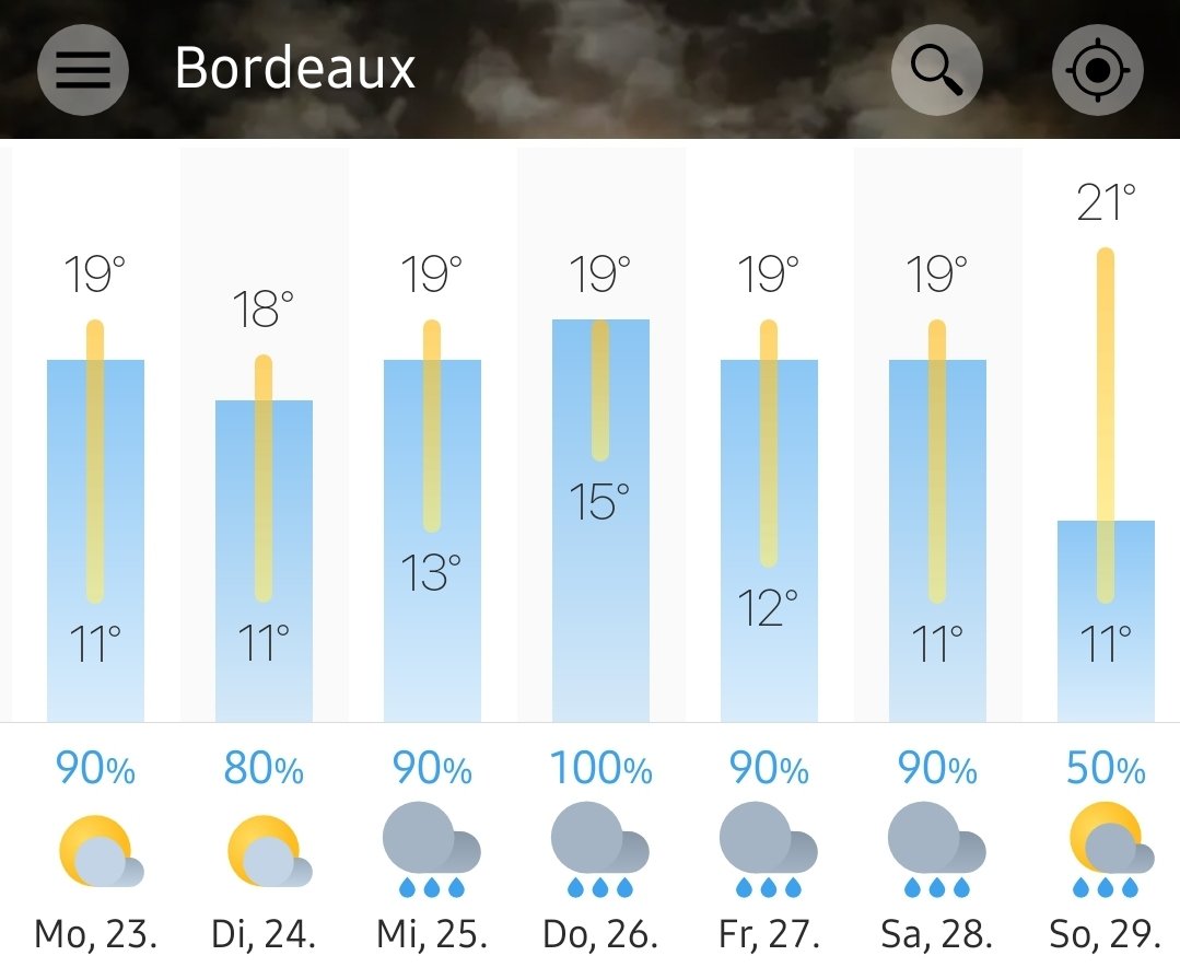 Leider lohnt es sich wetterbedingt nicht in Frankreich länger als nötig zu sein. Schade.