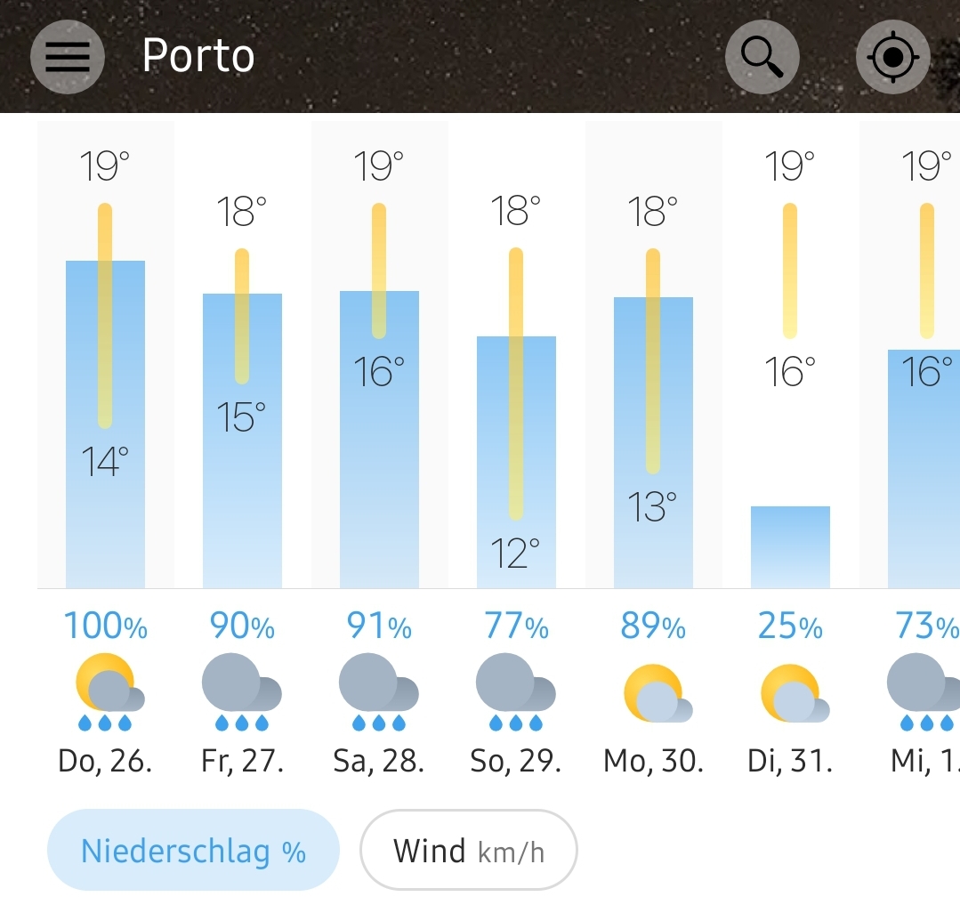 Und die Voraussagen sind HIER und an der Westküste und in Portugal nicht so rosig, ähm sonnig.