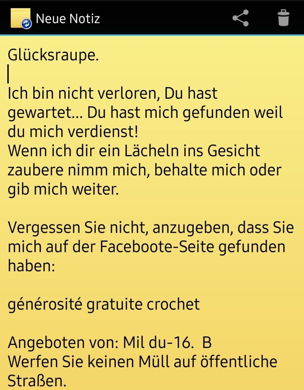 Beim Automaten war eine kleine Tüte wohl heute in der Früh für mich drapiert worden.