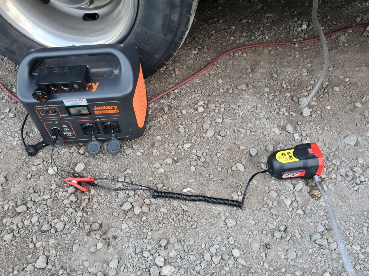 Zum Glück habe ich eine mobile Wasserpumpe dabei.