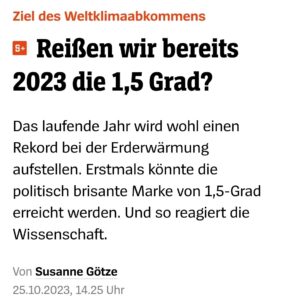 Und die Entwicklung der Klimakatastrophe nimmt ja immer mehr an Fahrt auf. Weltweit, ohoh.