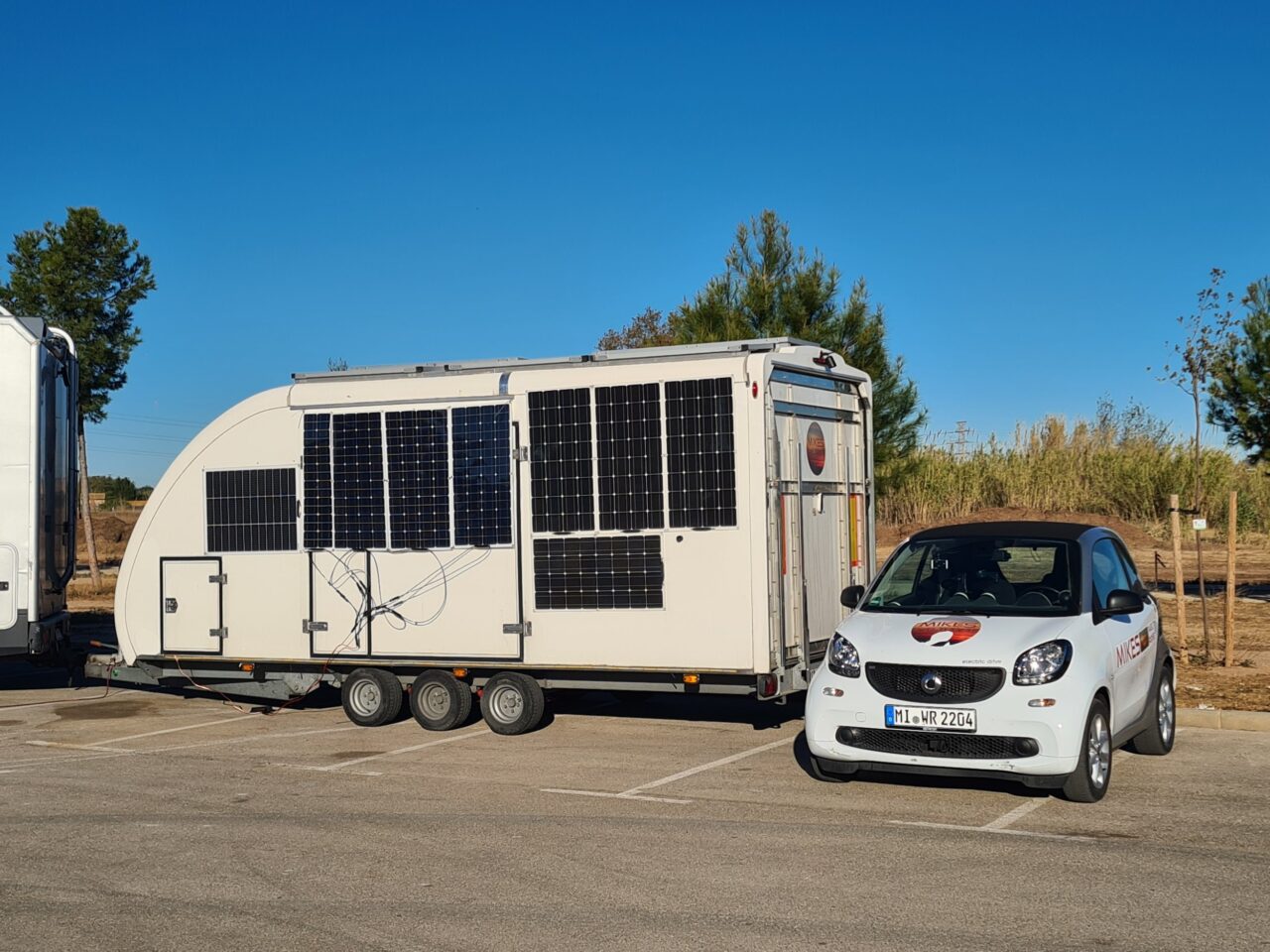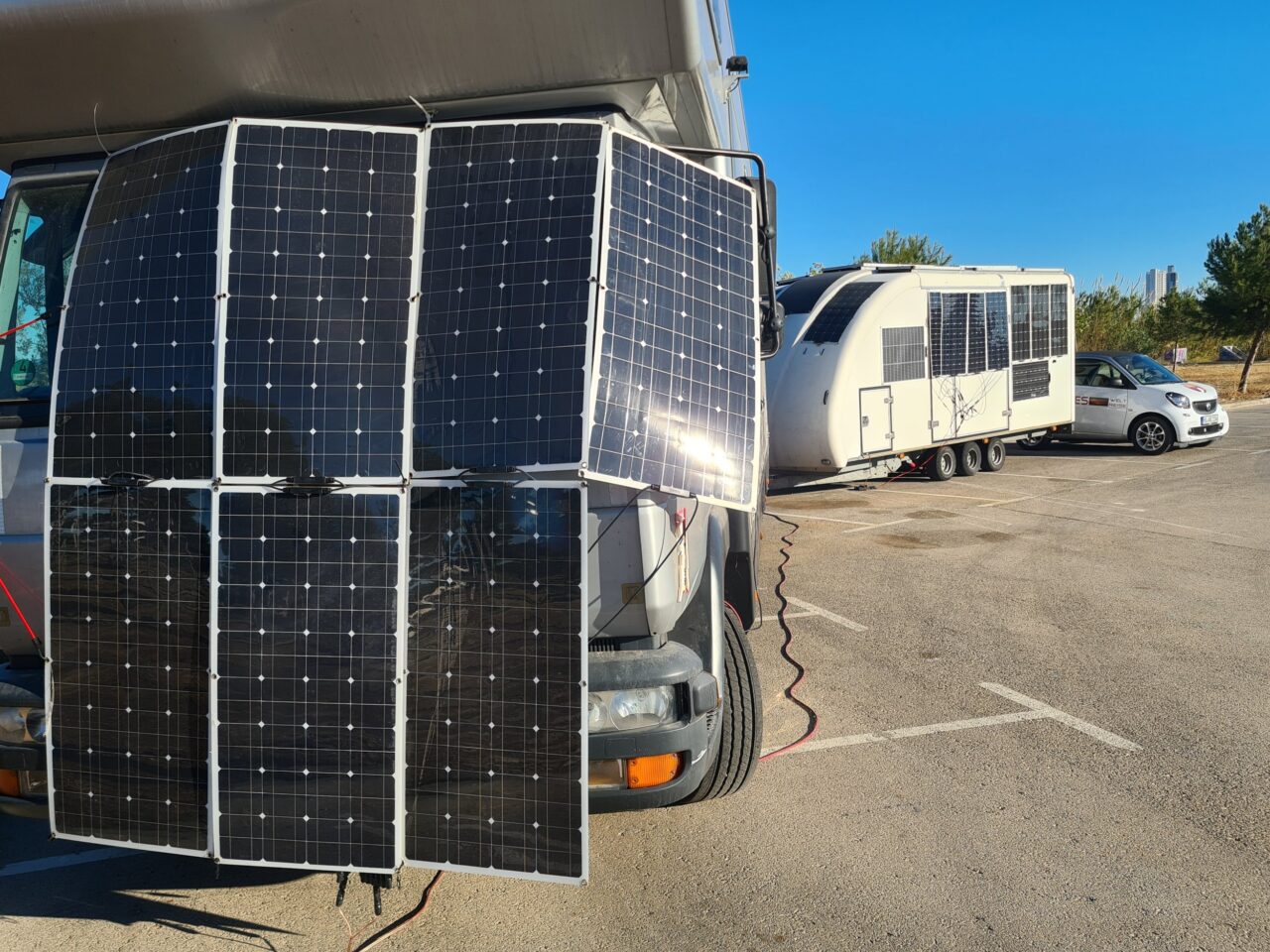 Jetzt erstmals am Anhänger die abnehmbaren Solarmodule befestigt und funktionieren einwandfrei.