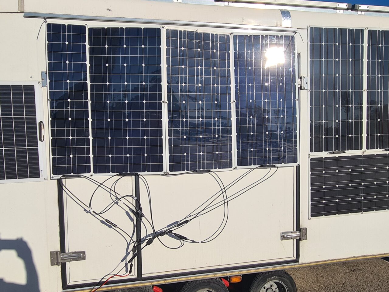Wir sehen unten in der Mitte den freien Platz für weitere Solarmodule. Richtig, habe ich letzte Woche bereits beim Großhändler geordert und werden im April flexibel verbaut.