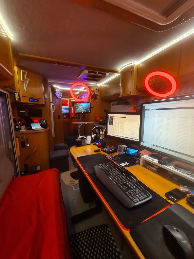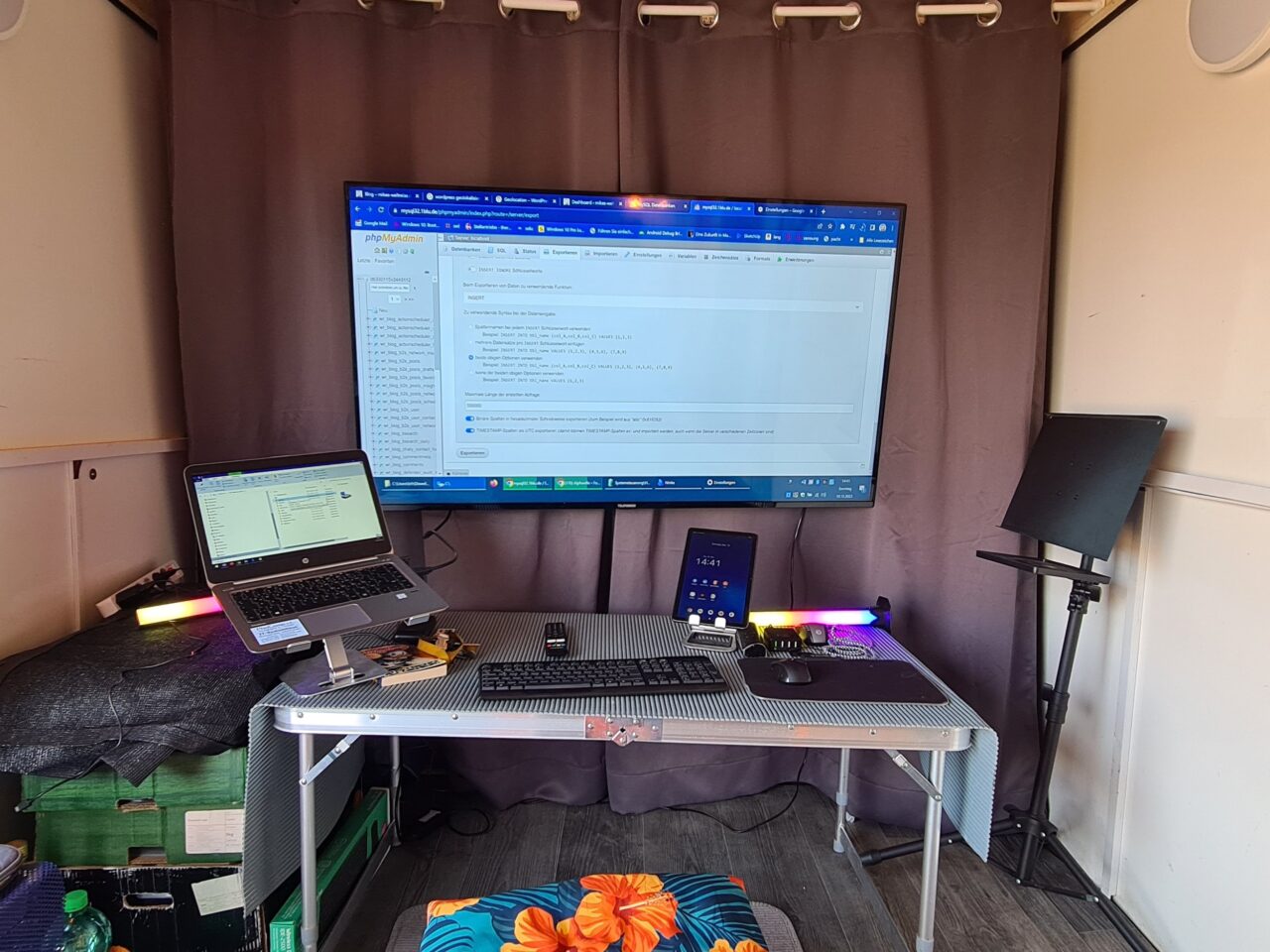 Den Arbeitsplatz im Lebensmobil gibt’s natürlich auch noch.
