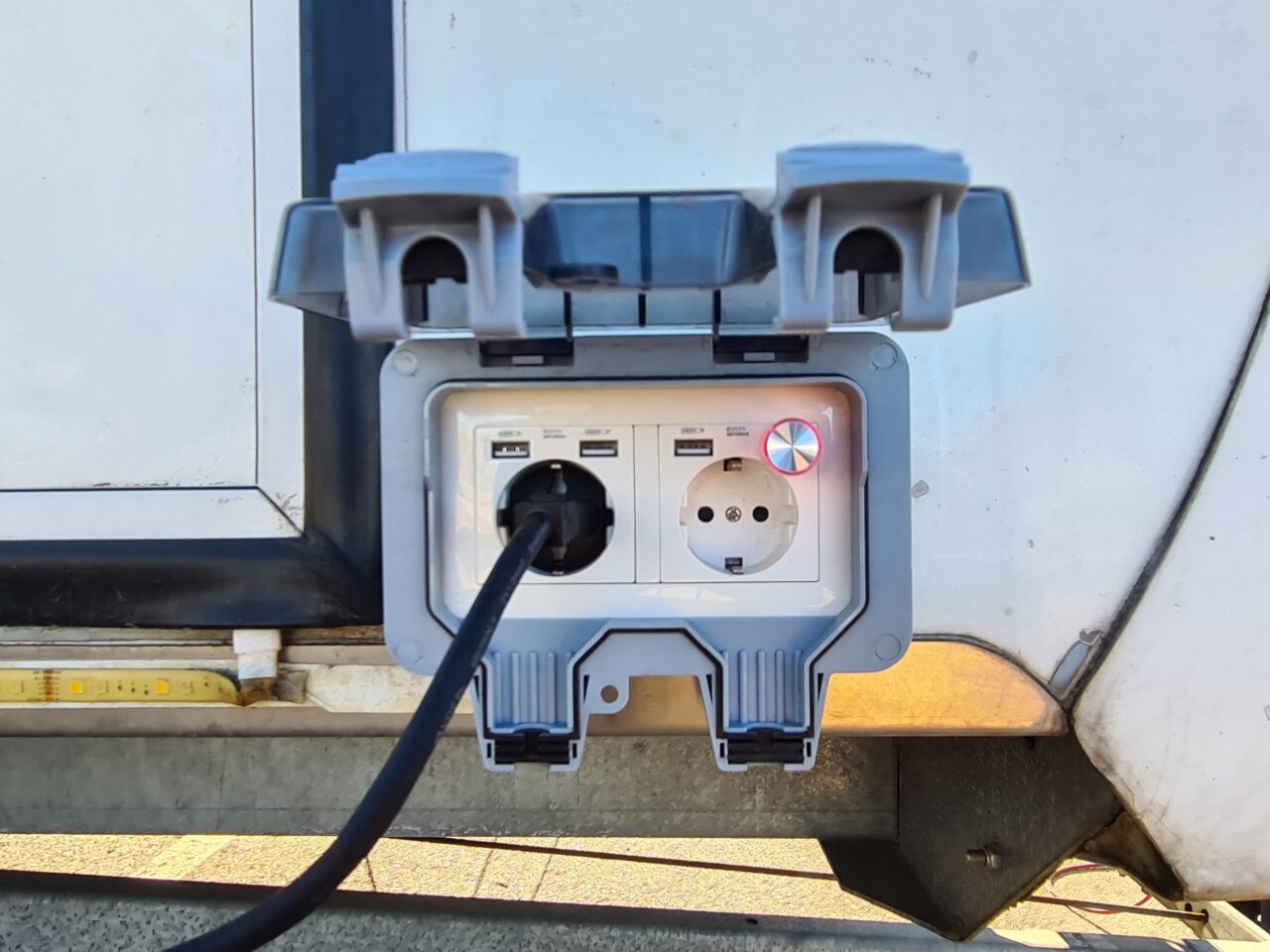 Zum Glück habe ich beim letzten Halt in Deutschland die neuen Außensteckdosen montiert.