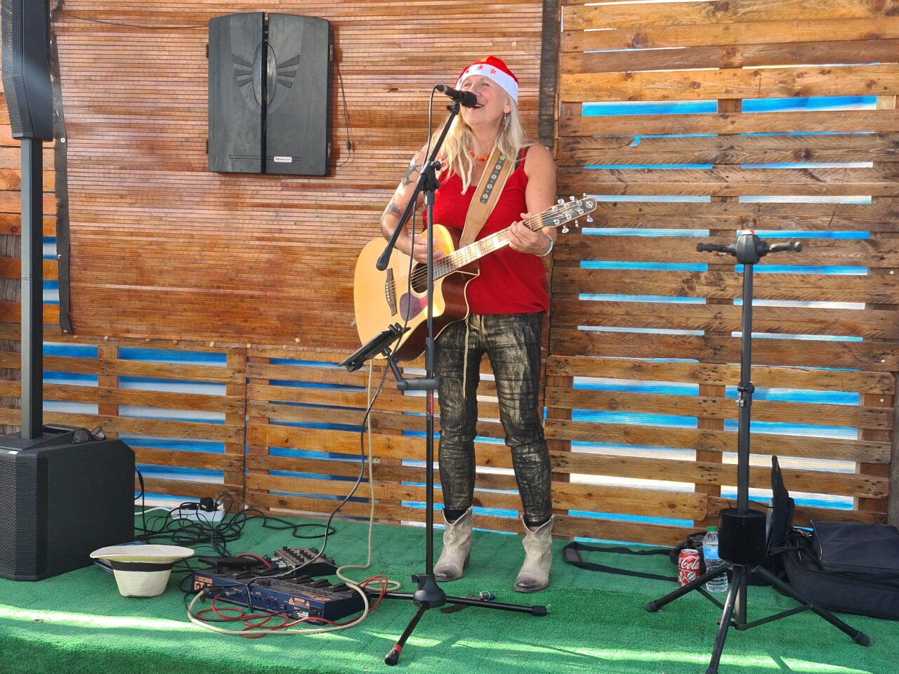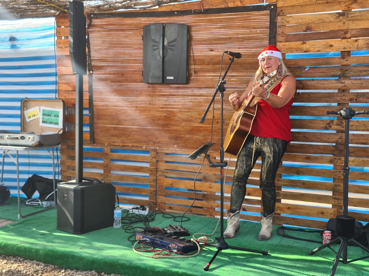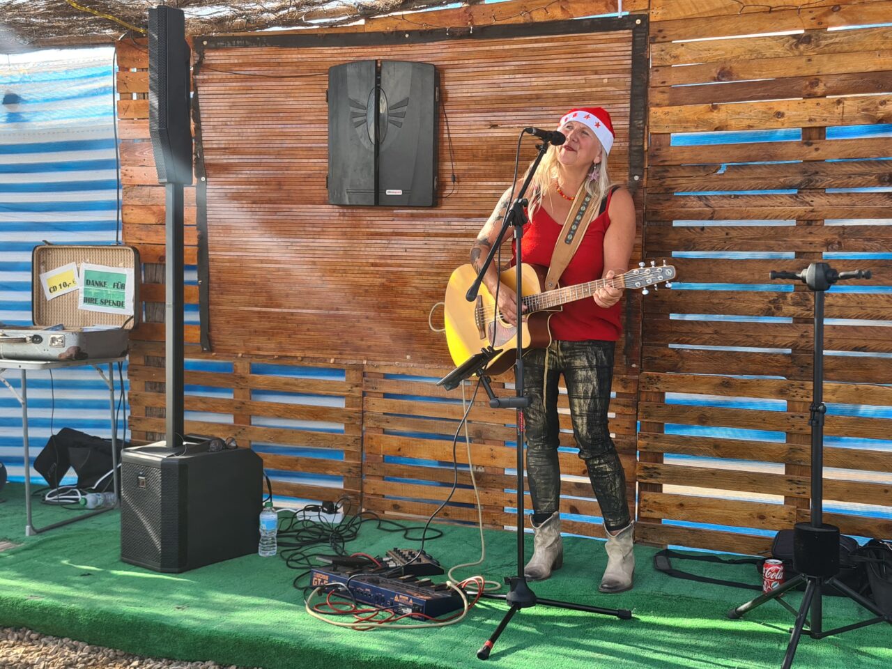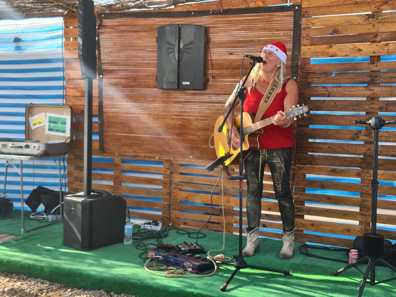 (Am Strand von Mazarrón) Am Nachmittag des 24. Dezember gab Marion ein gutes Konzert mit Gitarre und Gesang.