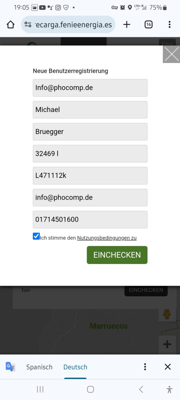 Über die Website muss wieder ZWINGEND die spanische SteuerNr eingegeben werden. Alternativ die spanische AusweisNr. 😡