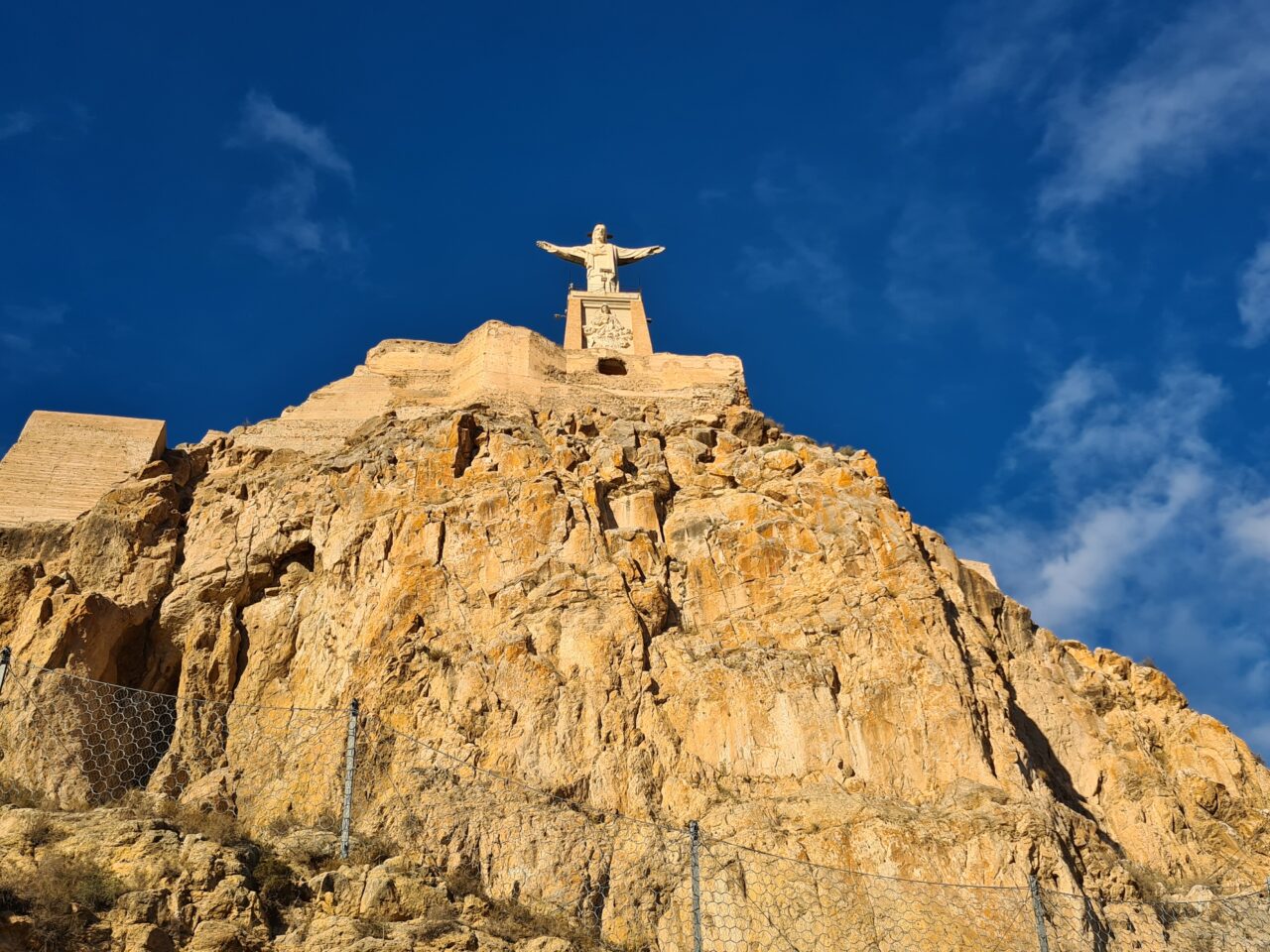 Die Burg wird von einer 14 Meter hohen Skulptur gekrönt: dem Christus von Monteagudo