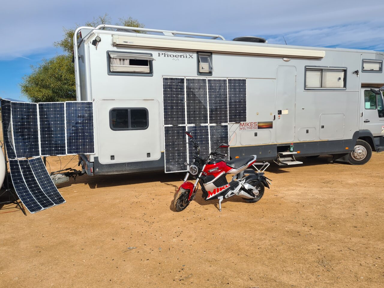 (Torre del Mar, 35 km von Málaga entfernt) Auf dem riesigen Platz habe ich die Möglichkeit auf dem Asphalt oder, etwas abgelegen, auf festem Sand zu stehen.