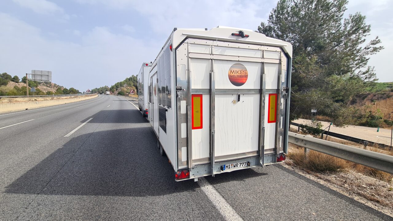 (60 km vor Valencia) Mit reduzierter Geschwindigkeit auf der Autobahn, nachdem mir eine Autofahrerin ein Zeichen gab, das ganze auf dem Seitenstreifen geprüft. Ohoh