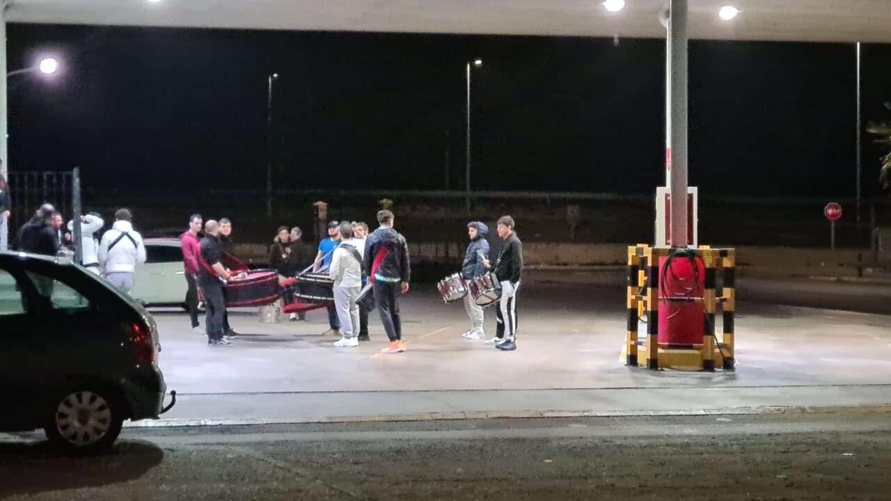 Hier im Industriegebiet stört sich niemand am musikalischen „Krach“ von jungen Menschen, welche am trommeln sind.