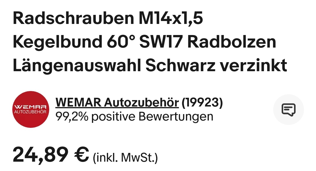 (Alzira) Die bestellten und gelieferten Schrauben für das Rad am Anhänger passten ja leider nicht.