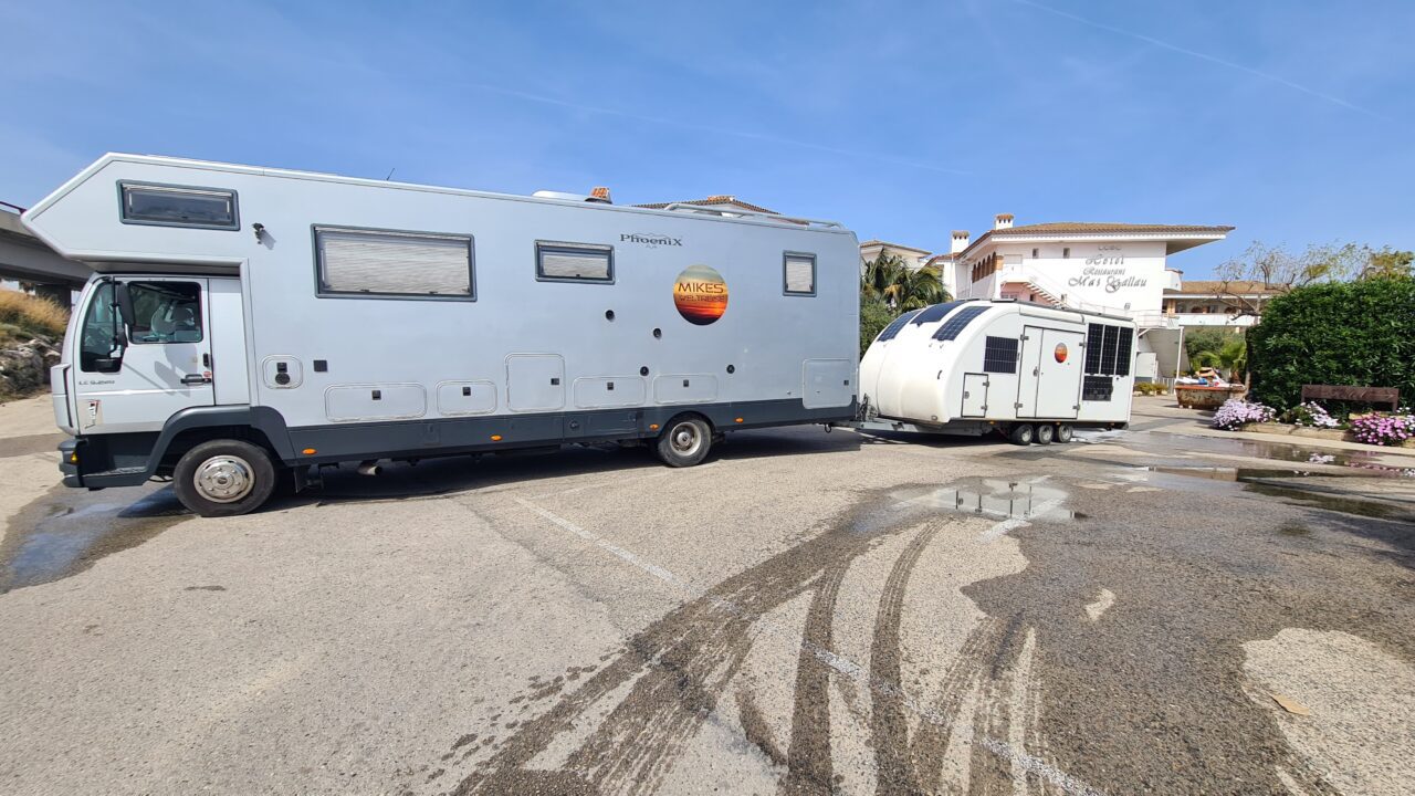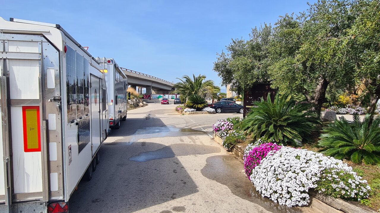 (etwa 200 km vor Girona) Üben, üben, üben hilft von Tag zu Tag besser rückwärts rangieren zu können.