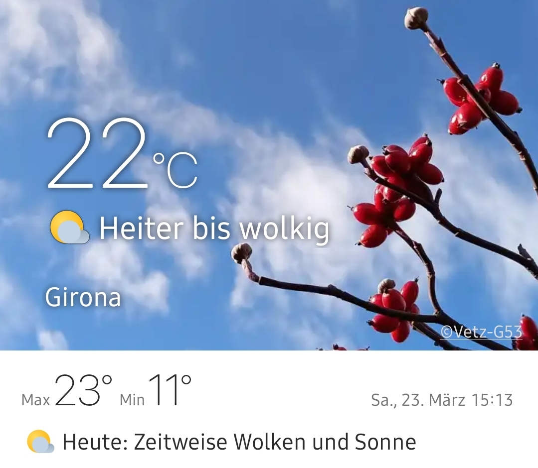 Und natürlich sehe ich das positive in DIESER ganzen Geschichte. Die Wetteraussichten in Petershagen sind eher herbstlich. Hier in Girona Frühsommer…. Da bleiben wir gerne….