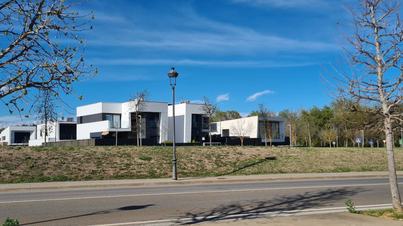(Sant Gregori) Aus Richtung Girona kommend viele neue Häuser. Die spanischen Gemeinden bauen sehr viele Sport- und Aufenthaltsorte für ihre Bürger. Das Leben in Spanien, ähnlich wie in anderen südeuropäischen Ländern, spielt sich viel draußen ab. Zumal die Spanier sehr kommunikativ sind.