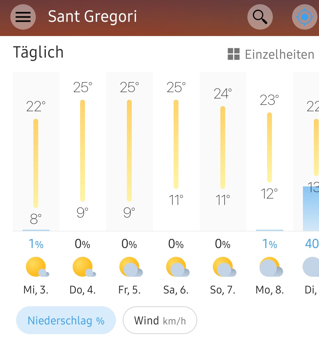 Das Wetter spielt mittlerweile für mich eine sehr große Rolle im Leben. Deshalb bleibe ich noch gerne hier. Siehe unten.
