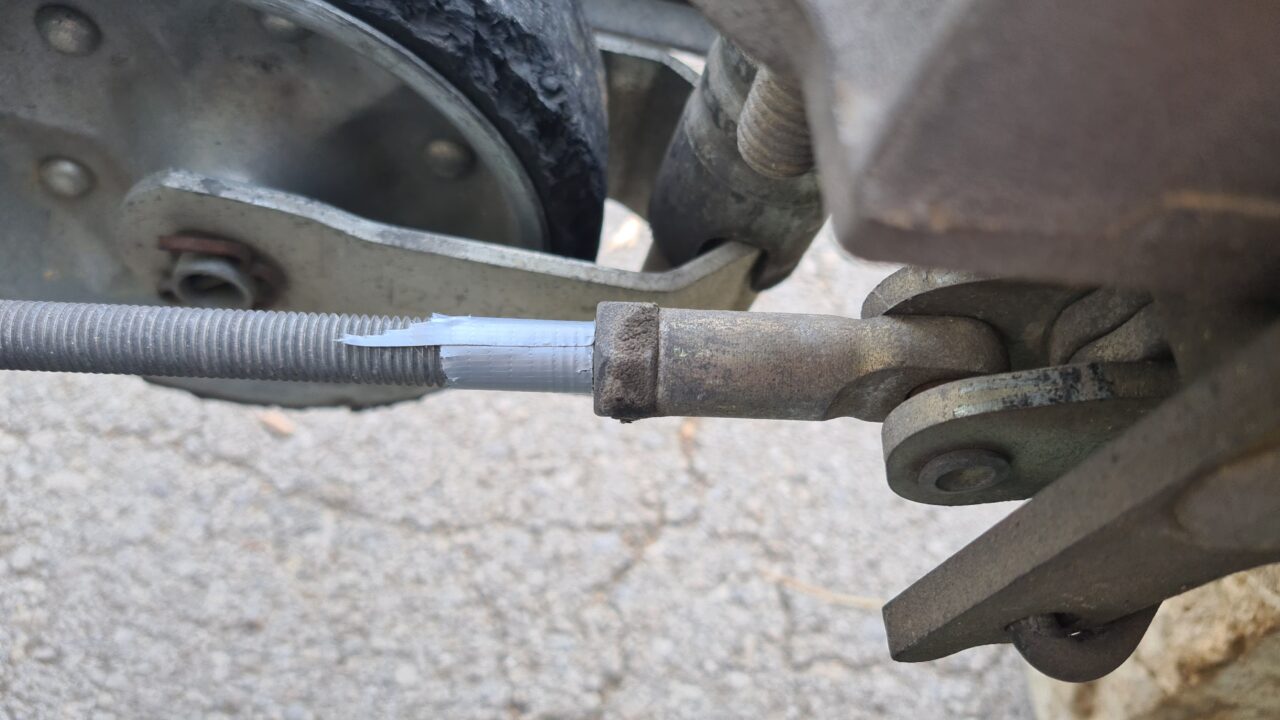 Tja und schon ging es los mit der etwa 4 Meter langen Gewindestange für das gesamte Bremssystem des Anhängers. FEST