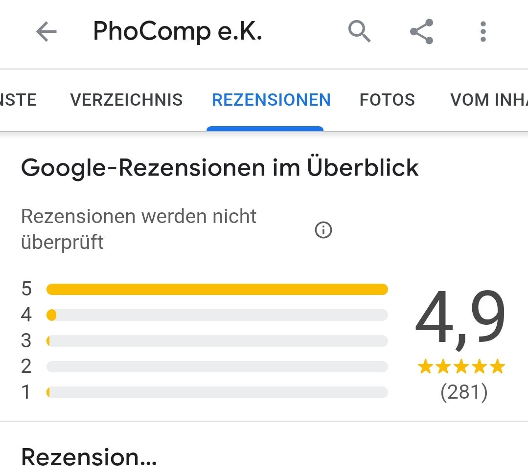 Die Bewertungen bei GOOGLE sind keine Fake und nicht gekauft, sondern von unseren Kunden!