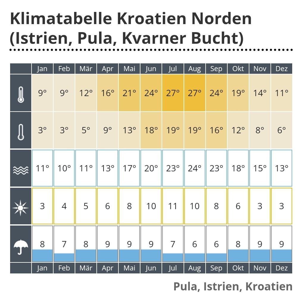 Je nach den Wetteraussichten möchte ich 1 bis 2 Wochen in Kroatien verbringen.