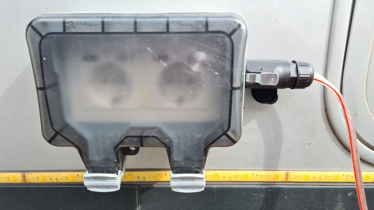 Bisher, mangels Anschlüsse, musste ich die 2 x 4mm² Leitung sanft durch eine Klappe quetschen.