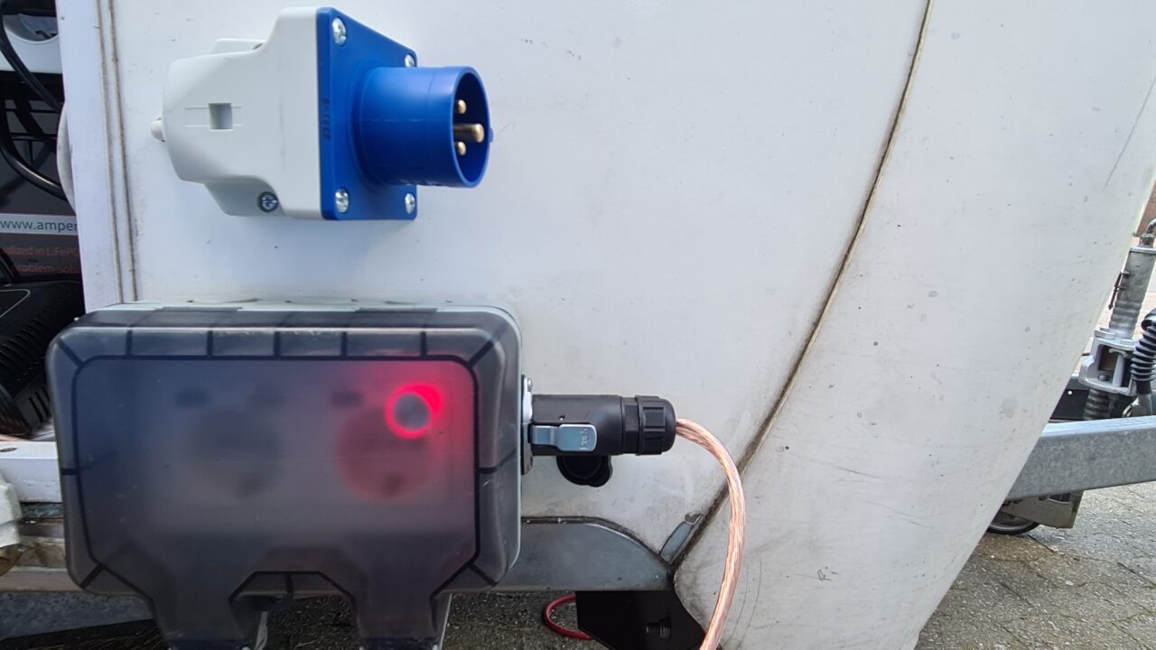 (Petershagen) Heute die weiteren externen 230 Volt Steckdosen plus USB Stromversorgung, Spritzwasser geschützt, am Anhänger links in Fahrtrichtung installiert und in Betrieb genommen.