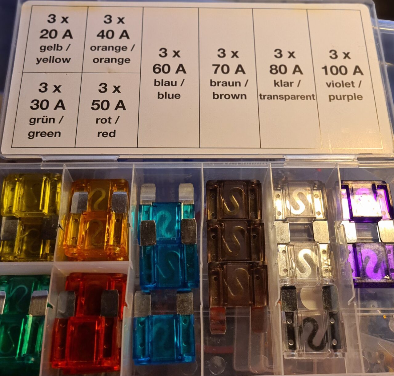 Ich habe Sicherungen aller Baugrößen, dazu mehrere 80 / 100 / 120 Ampere Keramik-Panzersicherungen immer dabei. Viel gelernt in den letzten 22.000 km.