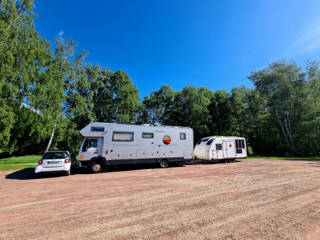 Ich solle meinen Camper mit Anhänger lang hinstellen und nicht auf dem Gras.