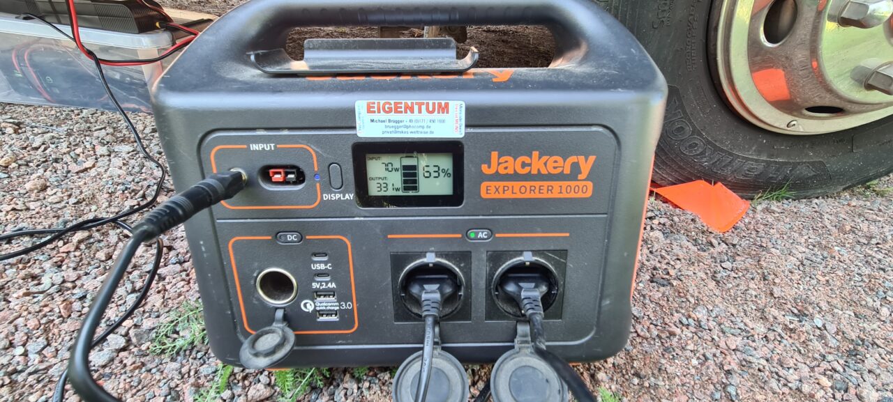Die beiden Solartaschen laden teilweise die Powerstation wieder auf.