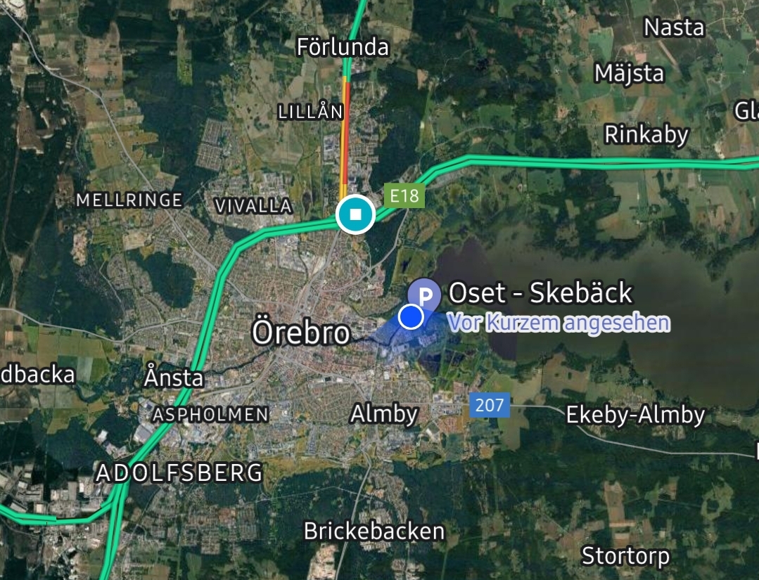 (Örebro) Bei leichtem Regen losgefahren, bei bestem Wetter unterwegs gewesen und bei herrlichem Sonnenschein gut angekommen.