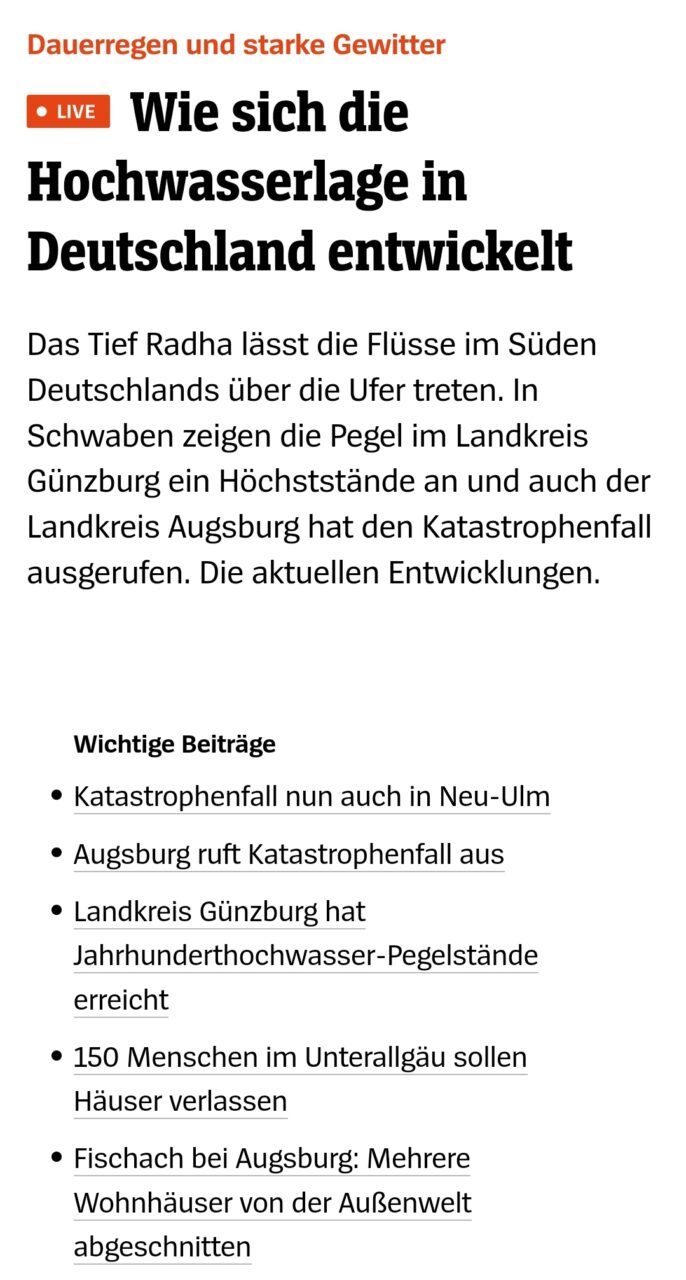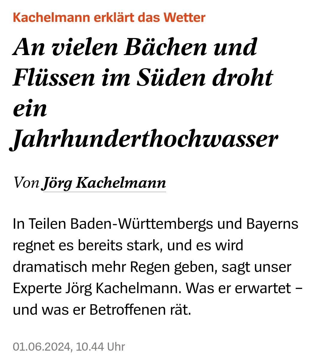 Wir erinnern daran, dass eine wärmere Welt eine nassere Welt ist. Auch Medien, die Klimakrisen-Geschichten gern routinemäßig mit Waldbränden bebildern, sollten das irgendwann zur Kenntnis nehmen.