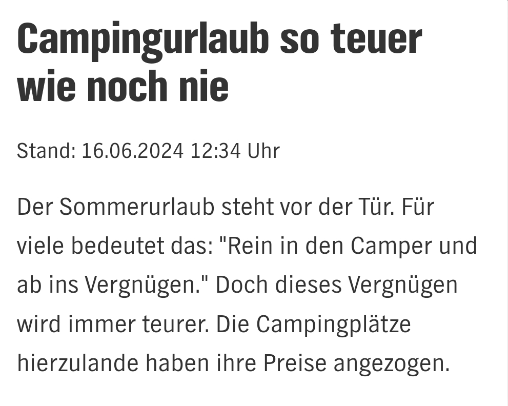 Das hat eine Erhebung des Campingunternehmens Pincamp ergeben, zu dem auch der ADAC gehört. Das sind im Schnitt gut zwölf Prozent mehr als noch 2023.