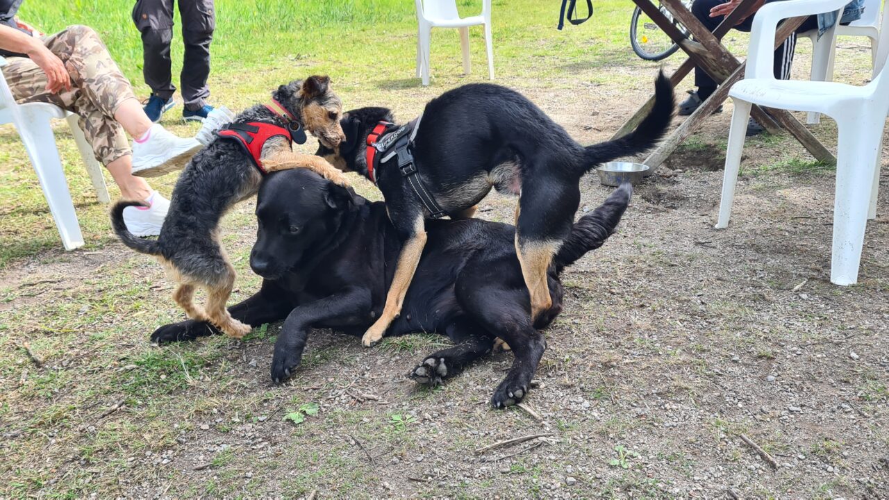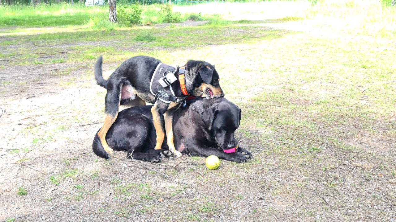 (bei Stockholm) Wieder einmal auf dem Hundeplatz, finden beide (kastrierten) Hundis Gefallen an einer Hündin.