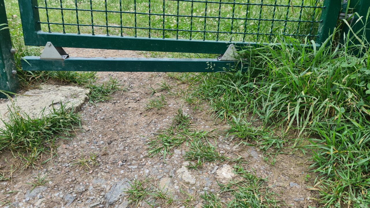 Der Zaun ist relativ neu und mit zwei Eingangstoren. Bei dem Tor, welches wir benutzen, wurde von anderen Hunden bereits unten gegraben. Ohoh.
