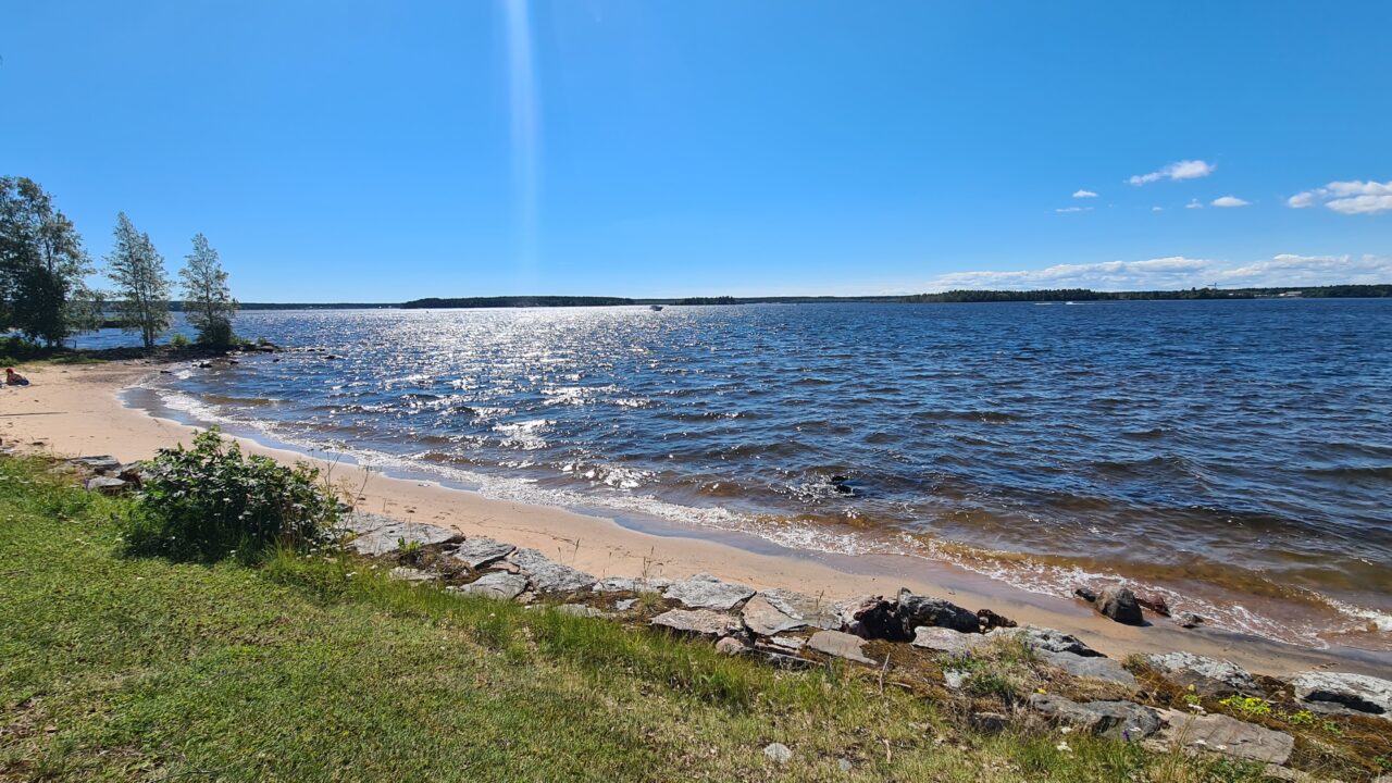 (Lulea /Schweden) Mit dem eBike in einer Minute entfernt befindet sich ein wunderschöner kleiner Sandstrand mit der Möglichkeit zu schwimmen.
