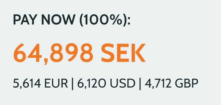 Hier einmal exemplarisch, heute Morgen bei einem schwedischen Anbieter für knapp zwei Wochen in der Nachsaison, bei realer Nutzung recherchiert.