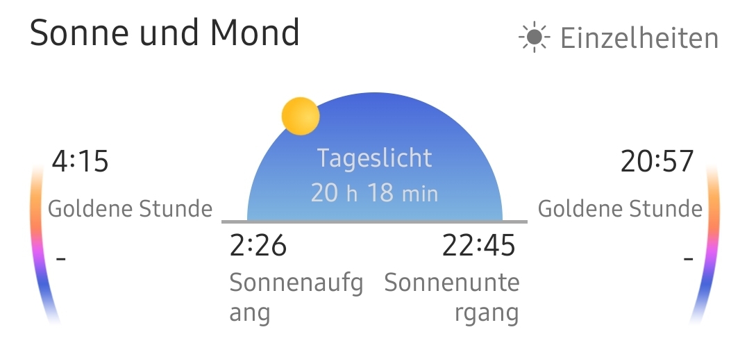 Heute Vormittag, 21° und in der prallen Sonne gefĂŒhlt etwa 24°, leichter Wind.