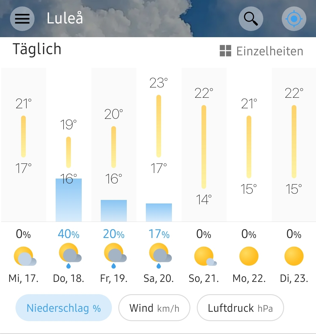 (Lulea /Schweden /sĂŒdlich des arktischen Polarkreises) Das regionale Wetter und die Wetteraussichten richtig beurteilen lernen.