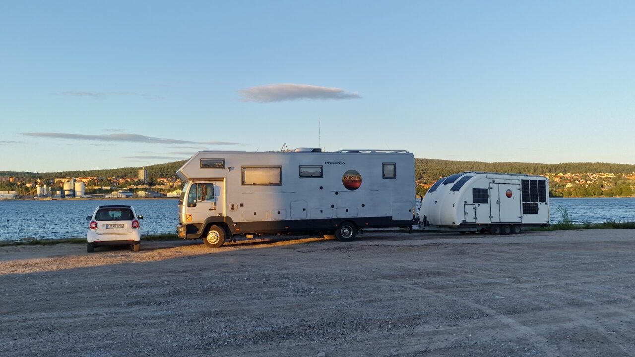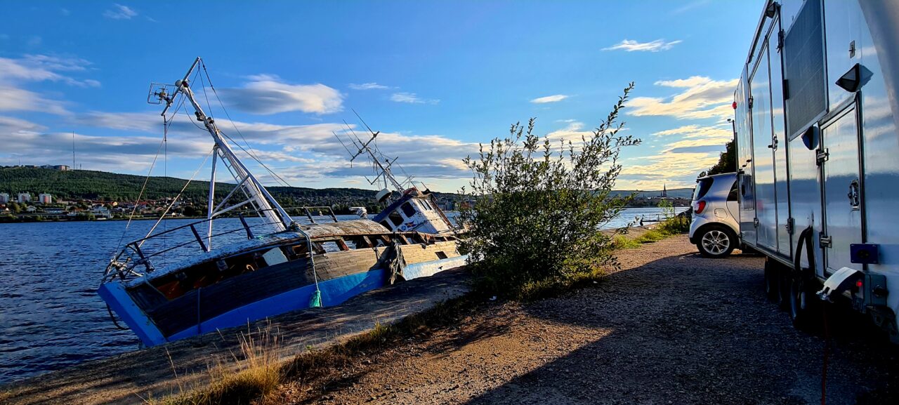 (Sundsvall /Mittelschweden) Direkt (!) am Wasser, neben einer Schiffsruine, mitten in der Stadt, absolute Ruhe, zumindest am frühen Morgen.