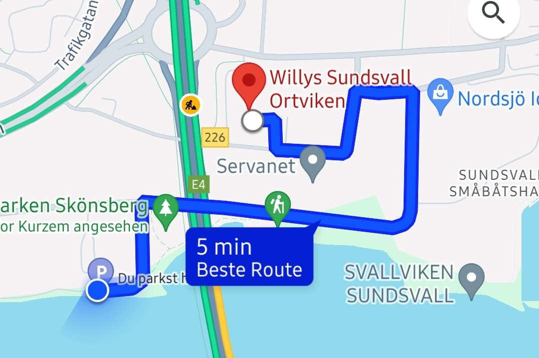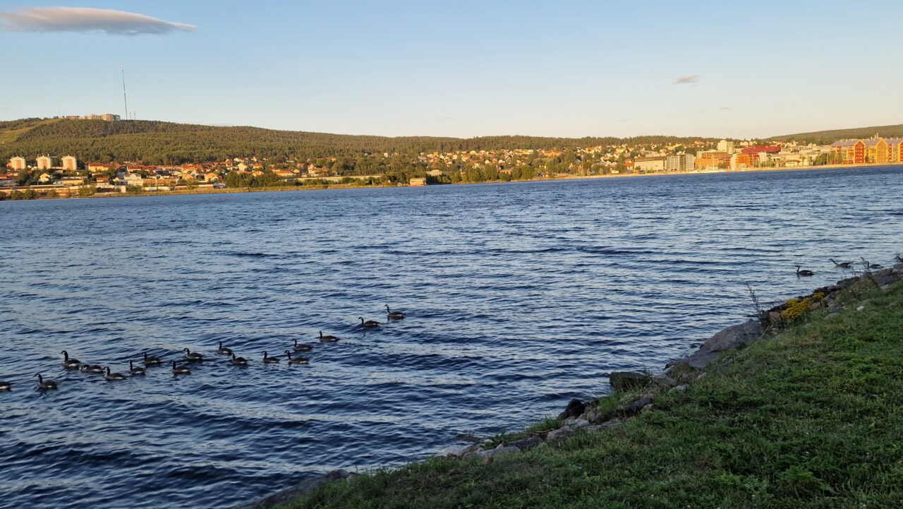 In 50 Metern beginnt der Fuß- und Radweg der Uferpromenade. Sundvall hat etwa 56.000 Einwohner und das Wetter spielt auch mit.