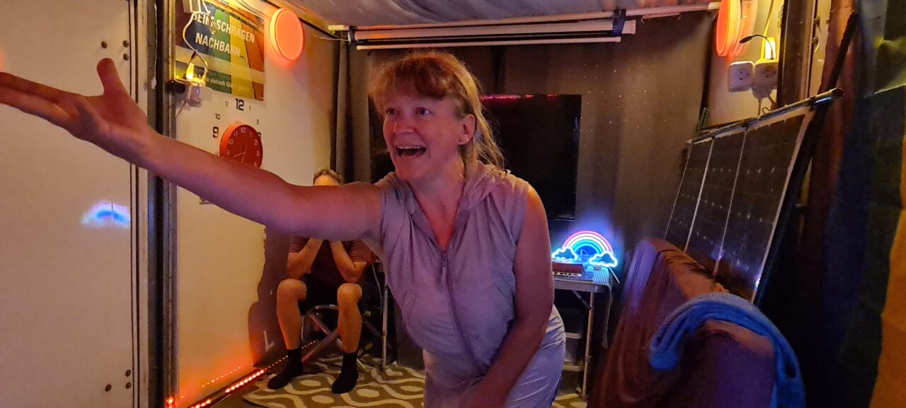 Dann habe ich sie eingeladen, zum lachen, bewegen und Spaß haben. Also gerne wieder ein wenig spielen, Wein genießen und Freude zu haben.