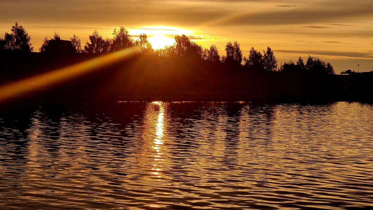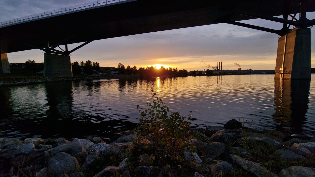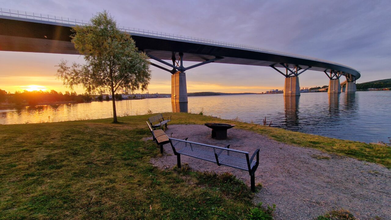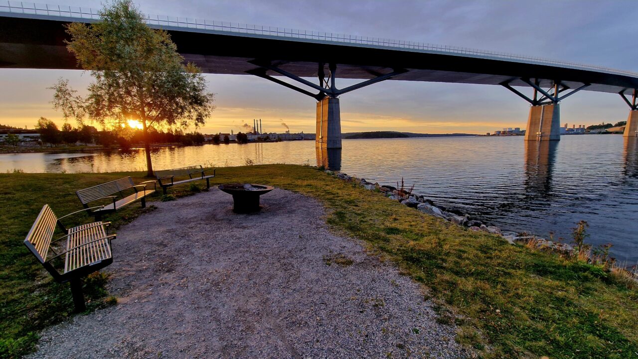 (Sundsvall /Mittelschweden) Einen wunderschönen Sonnenaufgang erleben dürfen, während die beiden Hundis wieder, fast synchron, wichtige Geschäfte im tiefen Gebüsch realisieren.