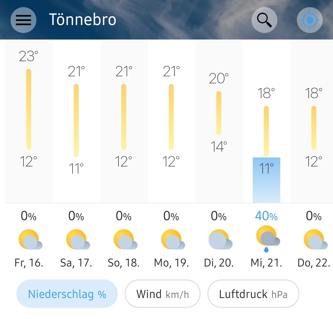 22°Celsius Temperatur, strahlend blauer Himmel, wenige Wolken, toller Sonnenschein. Wow.
